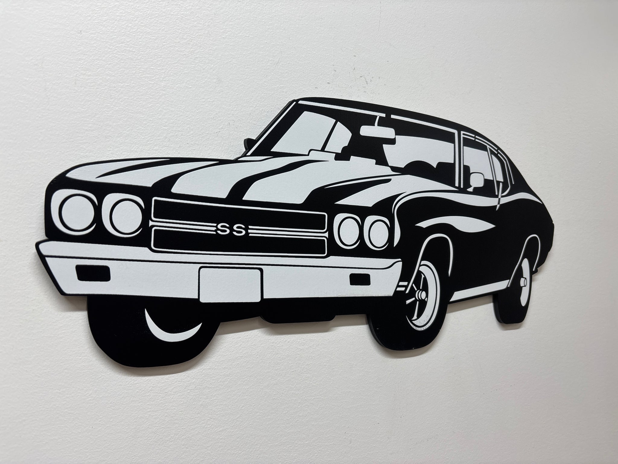 Rev up your home decor with our 1970 Chevelle wood wall decor. This quirky piece adds vintage charm and a touch of fun to any room. Give your walls the cool factor with this unique design. Only at our store